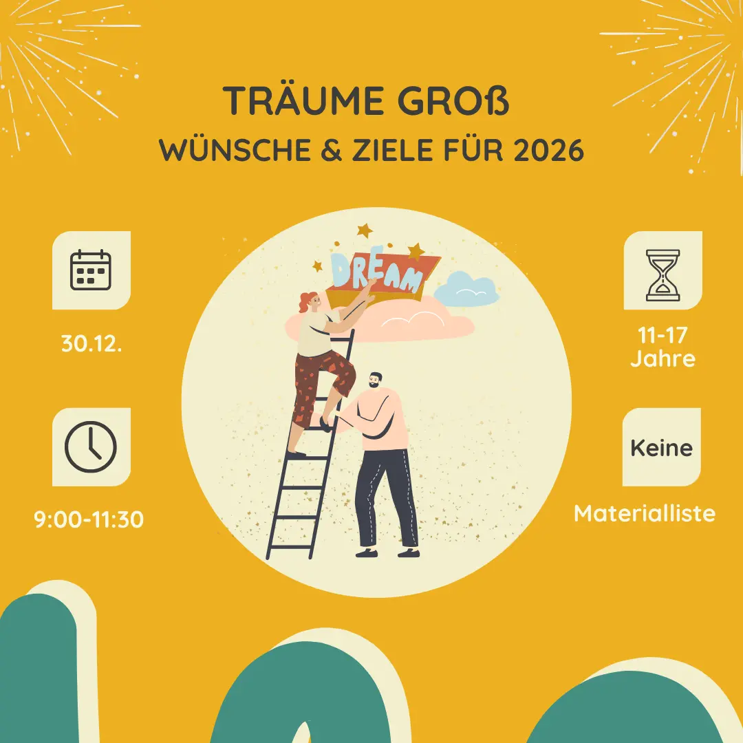 Gestalte dein eigenes Visionboard für 2026! Sammle Wünsche, Ideen und Ziele, male, klebe und gestalte alles bunt. So entdeckst du spielerisch, wie du deine Träume verwirklichen kannst, und startest motiviert und kreativ ins neue Jahr!