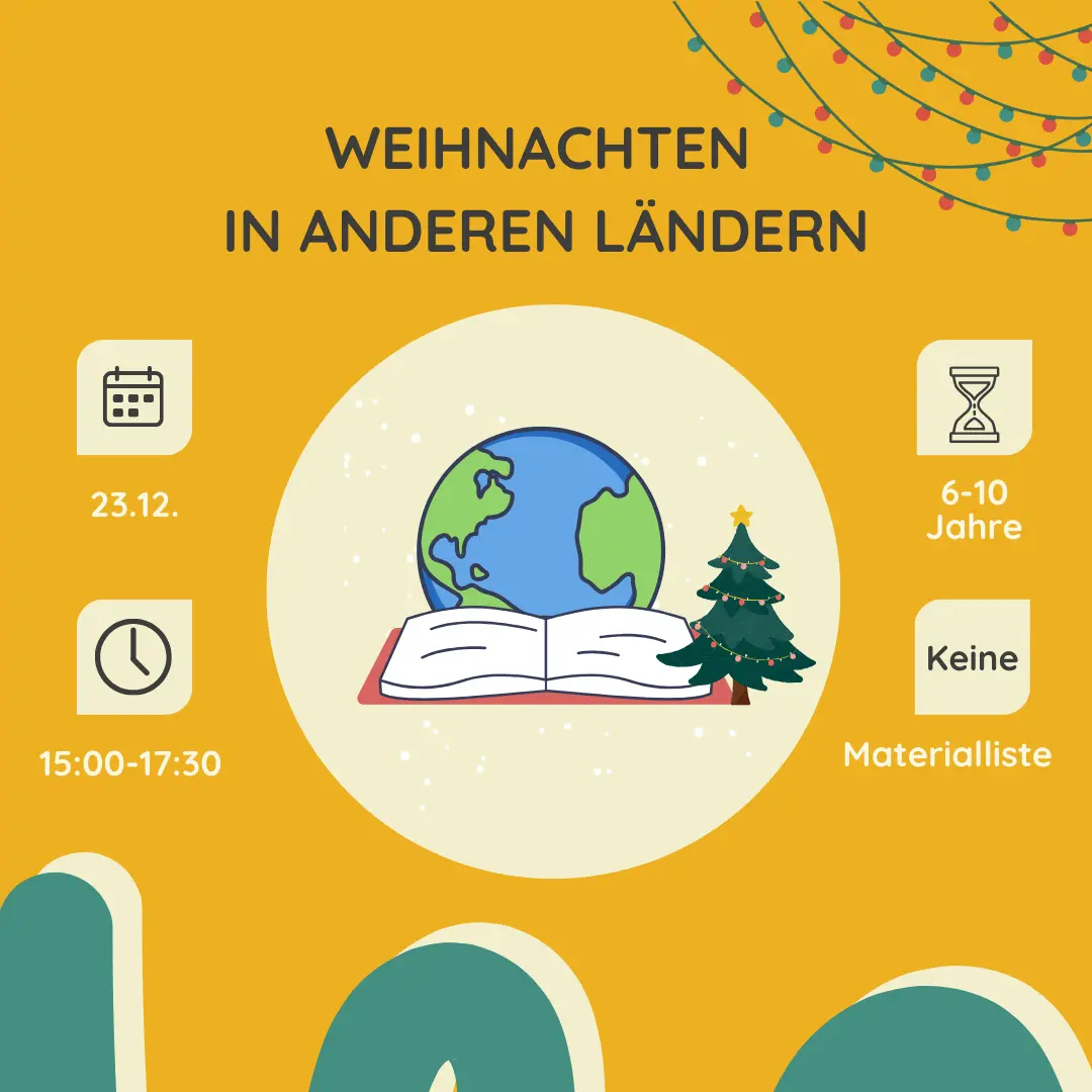 Andere Länder, andere Sitten! In diesem Workshop entdeckst du, wie Kinder am Nordpol, in Australien oder auf den Malediven Weihnachten feiern. Gemeinsam erforschen wir Bräuche, Lieder und besondere Traditionen und erleben, wie spannend und vielfältig Weihnachten auf der ganzen Welt sein kann!